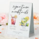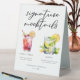 Cette signature chic mocktails menu panneau de tente comporte une typographie noire personnalisée au-dessus de 2 boissons non alcoolisées et leurs ingrédients pour votre bar mariage. Un joli temple de Shirley et un dessin de Mojito vierge ajoutent une touche cool à votre menu de bar. Complétez avec les noms du couple et la date de leur réception.