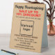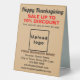BON THANKSGIVING ! Fête pour célébrer ce novembre pour remercier pour les bénédictions que nous avons reçues. C'est aussi l'un des jours fériés pour annoncer votre entreprise. Panneau de table personnalisable avec Thanksgiving Sale, votre nom d'entreprise et d'autres informations. Panneau de tableau que vous pouvez utiliser comme matériel marketing pour attirer plus de clients. Customisez-le et affichez-le sur votre magasin ou votre table de réception pour convaincre plus de clients d'acheter vos produits ou clients à aimer vos services ce Thanksgiving. Les couleurs design sont noir, marron foncé et des textes rouges sur arrière - plan marron clair. Les contenus sont des salutations Bons thanksgivings, des textes de vente avec pourcentage de réduction que vous offrirez, des dates de vente, votre nom d'entreprise, logo, adresse, numéro de téléphone, e-mail et site Web ou votre page de médias sociaux d'affaires. Veuillez vérifier l'apparence après avoir téléchargé le logo et tapé des textes. Si l'apparence vous plaît, vous pouvez passer votre commande maintenant. Si vous avez besoin de redimensionner et déplacer le logo et les textes pour s'adapter à ce panneau de table, s'il vous plaît changer dans l'outil de conception. Vous pouvez également modifier la couleur arrière - plan, la couleur de police et le style de police dans l'outil de conception. BON THANKSGIVING ! Je vous souhaite plus de ventes ce jour férié.