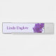Plaque d'identification d'orchidées de mur accrochant de porte pourpre de bureau sur la lavande.