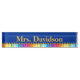 Plaque de bureau élégante de l'enseignant de l'école en bleu, avec une ligne colorée de crayons colorés sur le fond. Le texte jaune doré personnalisé est prêt à être personnalisé. Ça fait une idée de cadeau.