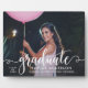 Élégant et élégant panneau de graduation avec chevalet comporte une photo de haut niveau avec une superposition "diplômée" en écriture blanche. Personnalisez le texte personnalisé moderne avec le nom de votre élève, l'école et l'année de classe. Fait un beau gardien à afficher dans votre maison!