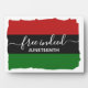 Plaque élégante JUNETEENTH aux couleurs panafricaines et LIBRE EN EFFET et JUNETEENTH en typographie moderne. Le dessin est inspiré du verset de la Bible chrétienne de Jean 8:36 - Celui que le Fils (Jésus) libère est en effet libre. Le drapeau rouge, noir et vert a un bord déchiqueté. Le mot JunetDix est PERSONNALISABLE, vous pouvez donc remplacer ou ajouter votre nom ou créer votre propre texte. Cette plaque du 11° juin ferait un grand cadeau pour célébrer le 11° juin avec les Afro-Américains et les Caraïbes qui fêtent le 11° siècle, mais aussi le Mois de l'histoire des Noirs, etc. Choisissez parmi une large sélection de modèles Junetten sur les vêtements, déco maison, cartes et cadeaux, conçus par Berean Designs.