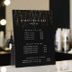 Plaque élégante avec chevalet affiche vos services, liste de prix ou informations d'affaires en lettrage blanc classique sur un riche arrière - plan noir avec des fils verticaux de fausse chaîne de feuille d'or en cascade du haut. Comprend trois en-têtes personnalisables et des champs de texte corps. Pour ajuster la disposition, entrez votre texte, puis utilisez la fonction Personnaliser pour modifier le positionnement et la taille des polices.