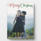 Élégante plaque photo Joyeux Noël avec belle typographie cursive en rouge et vert. Ce cadeau de famille de vacances moderne présente un script magnifique et votre nom en blanc sur l'image de fond.
