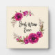 Une plaque photo avec le texte : Best Mom Ever. Conçu avec de jolis pavots rose fuchsia et des sprigs décoratifs et des feuilles dans une couronne circulaire fleurie. Joli et élégant et créé à l'aquarelle.