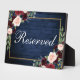 Aquarelle Rustique Bleu Bois Floral Bourgogne Marsala Bleu Or Cadre Mariage Réservé 5x7 Plaque de table
