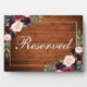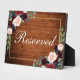 Bois rustique Aquarelle Floral Bourgogne Marsala Bleu Mariage de cadre Or Réservé 5x7 Plaque de table