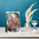 Mariage américain Nuit Beau collage surréel d'un couple d'Indiens américains - elle s'agenouille devant lui sur les rochers rouges - tandis que sa main repose sur son épaule - ceci est superposé sur un arrière - plan de plumes abstraites - dans le coin supérieur gauche est une vignette de nuage de buffle blanc qui semble sortir du ciel rempli de plume - dans le coin inférieur droit est un loup blanc hurlant