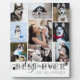 Créez un affichage de mémoire photo pour le BEST DOG MOM JAMAIS en utilisant ce modèle de collage photo facile à télécharger avec 9 images et le titre dans un design de typographie manuscrite moderne accentué d'empreintes de pattes en noir et gris et personnalisé avec votre texte personnalisé contre un arrière - plan blanc. Idéal pour commémorer la fête des mères pour la mère d'un bébé de fourrure. ASSISTANCE : Pour obtenir de l'aide sur la modification/personnalisation de la conception, le changement de couleur ou le transfert de la conception à un autre produit, contactez le concepteur AVANT DE COMMANDER via l'onglet MESSAGE Conversation Zazzle ou envoyez un courriel à makeitaboutyoustore@gmail.com.