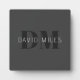 Plaque Photo Moderne gris foncé et noir Nom et monogramme modif
