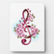 Pink treble clef with delicate, detailed pink Japanese cherry blossoms against white background painted over with light blue paint Blooming pink sakura.