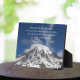 Plaque avec charnière qui présente l'image pittoresque d'un nuage casquette sur la neige enneigée du Mont Rainier, ainsi qu'une citation philosophique de l'historien Socrate.