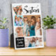 Un collage de photos moderne et tendance, plaque souvenir. La conception comporte une typographie script ''sœurs'', 5 photos et noms. Parfait comme cadeau ou souvenir.