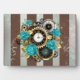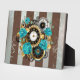 Plaque Photo Steampunk Clock and Turquoise Roses on Striped