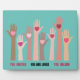 Plaque tabletop avec un message affirmant à tous : "Vous avez de l'importance, vous êtes aimés et vous aimez" texte avec des mains multi-toniques avec le coeur sur les palmiers