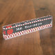 Plaque signalétique du bureau du maître d'école élégant faite dans un gris de tableau, avec une frontière checkered rouge et blanche, sur le dessus et le bas. Les graphiques d'une pomme rouge, décore l'aile gauche de la plaque et le texte blanc fait sur commande est prêt à personnaliser. Fait une grande idée de cadeau.