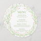 Plongez dans l'élégance classique avec notre carte de menu mariage ronde printemps/été bohème rustique. Décoré d'une courge de délicate couronne fleur sauvage rose vif, il ajoute une touche parfaite pour rehausser votre expérience culinaire.