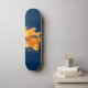 Plateforme de skateboard avec illustration nautique de poisson rouge à queue fourchue, gouvernail et ancre sur fond bleu marine.