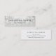 Die eleganten und eleganten Visitenkarten in einer papierrettend Minigröße sind mit klassischen schwarzen Schriftzeichen auf einem silbergrauen Hintergrund versehen, der von einem weißen Lichterklotz an der Oberseite geschmückt ist. Fügen Sie Ihre vollständigen Kontaktinformationen auf der Rückseite ein. Eine einmalige und elegante Wahl für jeden Beruf; ein Beispiel für Ästhetiker.