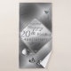 Ich entwarf diese Handtücher, die ihrem 20. Hochzeitstag gewidmet sind, mit einem Hinweis auf die traditionellen Geschenke von Smaragden, Keramik und modernem Platin, um ihren Meilenstein in diesem wunderbaren, originellen Design zu markieren.