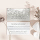 Chic Referenzkarten bieten klassische schwarze Schriftzeichen auf silbergrauem Hintergrund, die mit einem weißen Bokefeldschlag an der Spitze verziert sind. Fügen Sie auf der Rückseite Ihre Referenzbedingungen und Kontaktinformationen hinzu, mit Platz für die Namen Ihrer Kunden.