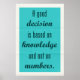 Motivierend Plato Zitat: Eine gute Entscheidung basiert auf Wissen und nicht auf Zahlen.