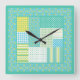 Eine hübsche quadratische Wall-Uhr, mit einem Imitat-Flickwerk aus goldenen, türkisfarbenen Daffodien, gepaart mit passenden Polka-Punkten, Karo-Ginghams und Streifen, aus der Posh & Painterly "Spring Sunshine" Kollektion.