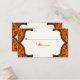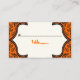 Skulls Damast orange schwarzes Muster Halloween Hochzeitsfeier Platzkarte. Dieses formale, elegante Design besticht durch ein Damast-Blumenmuster und Schädelmuster sowie durch einen Elfenbeinrahmen in der Mitte. Klassisches, aber zeitgemäßes Design mit zwei Schriftart: einem Vintagen und einem coolen. Elegantes, sprichwörtliches Design, perfekt für gotische oder Halloween-Hochzeiten im Herbst.
