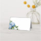 Diese gefaltete Platzkarte wird in weißem Grundweiß mit einem hübschen, blauen Hydrangea-Kunstdruck gezeigt. Passen Sie dieses Objekt an oder schreiben Sie einfach per Hand den Namen.