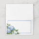 Diese gefaltete Platzkarte wird in weißem Grundweiß mit einem hübschen, blauen Hydrangea-Kunstdruck gezeigt. Passen Sie diesen Artikel an oder kaufen Sie einfach, wie es ist und geben Sie den Namen in. Lizenziertes Bild