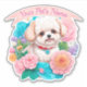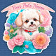 Playful Bichon Frisé, bunte Blume Aufkleber
