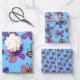 Purple and pink modern design featuring playful butterflies on a blue background.