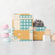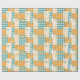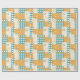 A bold patchwork-style pattern built from rectangular blocks and graphic symbols.