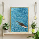 This charming wildlife illustration features a playful river otter swimming through flowing blue water, surrounded by textured wave patterns that create a calming and dynamic ocean-like movement. The artwork captures the beauty of aquatic wildlife, river animals, and peaceful nature scenes, making it a perfect choice for lovers of animal illustration, marine life art, and nature inspired decor.