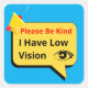 please be kind, i have low vision - dialog quadratischer aufkleber