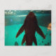 Auf dieser Postkarte befindet sich ein Pleco, der an der Seite eines Tanks festklammert. Der Hintergrund ist blau und man sieht den Bauch und den Mund des Pleco.