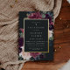Chic florale Taufe oder Taufeinladung mit einer Grenze von bordeauxroten Marsala lila, rot rosa und staubblauen Blumen, üppiges botanisches Blattwerk, Grün und Goldfolien. Persönlich gestalten Sie Ihre Kirchenfeier und feiern Sie Details in modernen Schriften auf einem reichen kohlehaltigen Hintergrund.