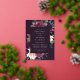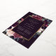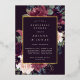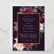 Das Abendessen mit der Probe ist mit einer lila bordeauxroten Marsala, Rosa und dustigen blauen Blumen, üppigem botanischem Blattwerk, Grün und Goldfolien geschmückt. Persönlich gestalten Sie Ihre Hochzeitsfeier mit Probe und Dinner-Details in modernen Schriften auf einem lila, dunklen Hintergrund.