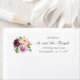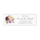 Elegantes florales Hochzeitslabel mit einem Aquarellbouquet, bestehend aus Rose in Pflaume, Rosa und lila auf dem links. Rechts sind die Worte "Die Zukunft Herr und Frau", zusammen mit Ihrem Namen und zwei Textzeilen für Ihre Rücksendeadresse. Mit diesen Rücksendeadressen-Aufklebern können Sie Ihren Umschlägen eine persönliche Touch hinzufügen.