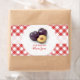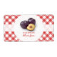 Personalisieren Sie Ihre Gläser von Zuhause-Konserven! Individuell anpassbare Retrojarketiketten für hausgemachte Pflaumenkonfitüren, Pflaumen oder Konserven mit frischen Pflaumen auf roten und weißen Gingham Tischdecken. Andere Obstkleber sind ebenfalls erhältlich.