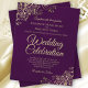 Diese preiswerten und freundlichen Einladungen für Hochzeiten sind die perfekte Wahl für Klasse, Stil und Schönheit zu einem günstigen Preis. Das Design zeichnet sich durch einen lila, tiefen Pflaumenhintergrund aus, mit verzierten goldenen Gardinen und Wirbel in den Ecken. Die Typografie beinhaltet extravagante Schriftzeichen für einen Stil, der gleichzeitig einfach und elegant ist. Ein wunderbarer Weg, um Ihre Freunde und Familie einzuladen, sich an Ihrem besonderen Tag zu erfreuen, ohne die Bank zu brechen.
