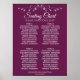 Faites de votre réception de mariage une belle avec ce tableau de sièges. Dispose d'un design simple mais élégant avec du texte blanc sur un plum magenta ou un arrière - plan violet de cassis avec une bordure florale en faux feuille argent. Ce graphique montre les affectations de table afin que vos invités aient un temps facile à trouver la bonne table.