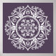 Dieses weiße Mandala sitzt auf einem Pflaumenhintergrund. Die Farben sind sehr raffiniert. Teil der Rosenn Mandala Kollektion.