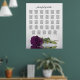 Ce somptueux tableau de sièges mariages présente une photo d'un rose à long tige de prune violet ou d'aubergine couché sur son côté réfléchissant dans un bassin d'eau avec vagues et ondulations. Le titre dit "s'il vous plaît trouvez votre table" dans élégante calligraphie de script en dentelle. Il y a de la place pour les noms du couple et la date du mariage ci-dessous. Ce tableau a des affectations de table pour 290 invités dans un arrangement traditionnel de 10 personnes par table.