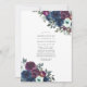 Weiße, blaue und bordofarbene Rose und Torfbäume Blumen-Feier des Lebens Einladung mit eleganter Typografie, die auf Ihre Veranstaltungsspezifikationen zugeschnitten ist.