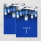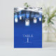 Plumes de paon, pot Mason et numéro de table lumin