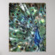 Ein herrlicher Pfau bewundert seine juwelengeplagten Federn, die in Blues und Grüntönen eifrig sind. Poster.