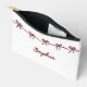 Pochette de voyage à écriture moderne pour demoiselle d'honneur avec nœud de Bourgogne, avec une bordure de nœud papillon élégante le long du bord supérieur et un nom personnalisé en écriture centré en dessous. Cette pochette élégante est parfaite pour ranger les cosmétiques, les essentiels de voyage, le maquillage ou les petits trésors. Idéale pour les cadeaux de demoiselle d'honneur, elle allie design moderne et praticité, ce qui en fait un ajout beau et attentionné à tout ensemble de cadeaux pour la fête de mariage.🦋 Vous pouvez facilement personnaliser le produit en ajoutant votre nom pour le rendre complètement unique. Vous pouvez également changer la police à votre goût en ouvrant "Personnaliser ce modèle" > "Modifier à l'aide de l'outil de conception".