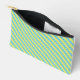 Symmetrical grid of crumpled paper textures in alternating greenish-yellow and light blue, creating a vibrant, tactile striped pattern with depth and visual rhythm