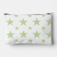 A pretty and feminine green stars pouch. This modern, elegant cosmetic bag doubles as a pastel pencil case, perfect as a cute toiletry or back-to-school makeup bag for her, girls, or a constellation-themed accessory.